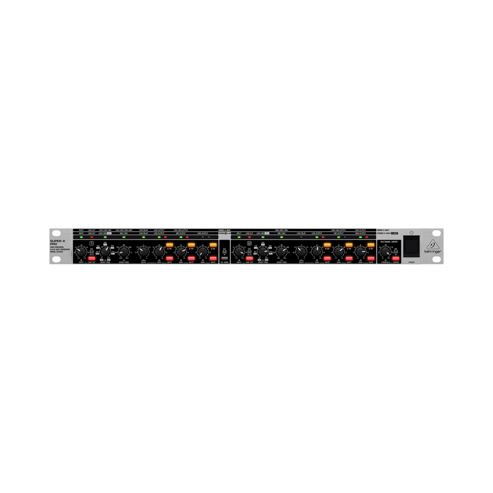 СХ3400 - это активный кроссовер, разделяющий сигналы в стереорежиме на две или три частотные полосы, а в монорежиме - на четыре полосы. Каждая полоса наделена фильтром Линквица-Райли 4-го порядка (24 дБ/октава) и индивидуальным лимитером. Дополнительная функция задержки сигнала до 2 мс обеспечивает выравнивание фазы между динамиками громкоговорителей. На каждом выходе предусмотрен переключатель полярности, позволяющий быстро инвертировать фазы динамиков и рупоров системы. - В основу работы CX3400 положены фильтры Линквица-Райли с крутизной спада 24 dB в диапазоне одной октавы - Абсолютно плоская амплитудная характеристика с отсутствием фазовых искажений - Индивидуальные регуляторы выходного уровня на всех полосах фильтрации - Индивидуальный лимитер на каждом выходе - Кнопки глушения сигнала на каждой полосе - Кнопки реверсного переключения фазы - Фильтры подавления инфрачастот на каждом входе - Назначаемое время задержки для удаления фазовых различий между отдельными полосами