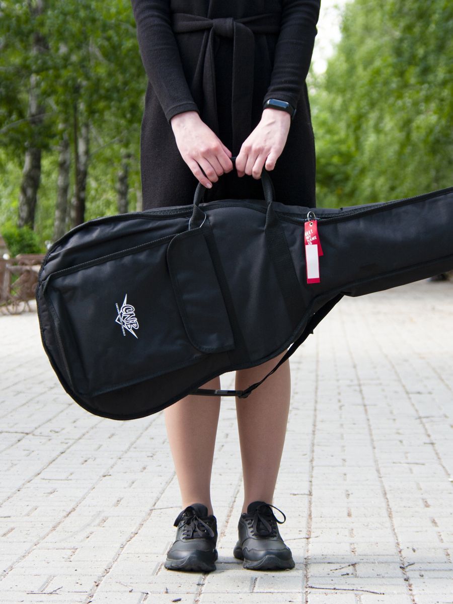 CNB DB400  представляет собой прочный и качественный чехол для акустической гитары. Чехол изготовлен из водонепроницаемого нейлона с плотностью 600 D. Защитное уплотнение толщиной 7 мм предотвращает появление царапин и потертостей на инструменте. Чехол закрывается на прочную молнию с крепкими зипперами. Модель имеет большой наружный карман для хранения нот и гитарных аксессуаров. Заплечный ремень позволяет с удобством переносить гитару за спиной. Для транспортировки инструмента в горизонтальном положении имеются две прочные боковые ручки. Модель CNB DB400 выполнена в черном цвете, однако классический дизайн прекрасно дополняет логотип компании, расположенный на кармане.   Чехол CNB DB400  – надежная защита вашего инструмента от пыли, механических повреждений и температурных перепадов.