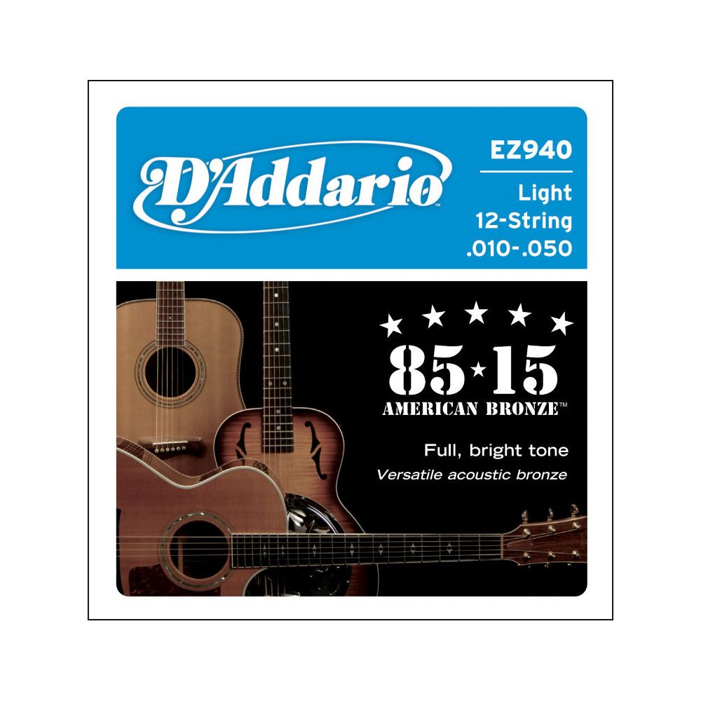 Струны для 12-струнной акустической гитары, бронза, 85/15, Light, 10-50.