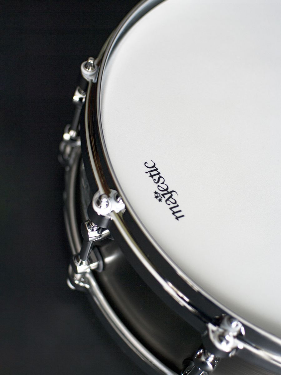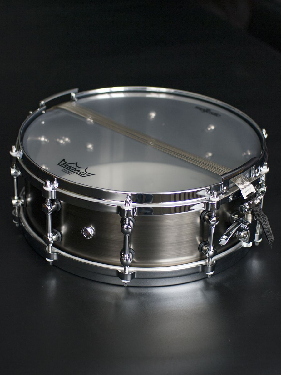 Размер: 14"x 5" Корпус: чугун (6,35 мм) Фурнитура корпуса: хромированная Кромка: закругленная (сверху); внутренняя острая 45° (снизу) Отделка: матовый античный никель Обод: литой (цинк) Верхний пластик: Remo Ambassador Coated Резонансный пластик: Remo Diplomat Hazy (со стороны малого барабана) Фильтр: OP-01 Подструнник: ST16-1403, нержавеющая сталь без покрытия (4) x 0,6 мм + (10) x 0,8 мм + (2) x 1,0 мм Модификатор частоты: PFM1440/50