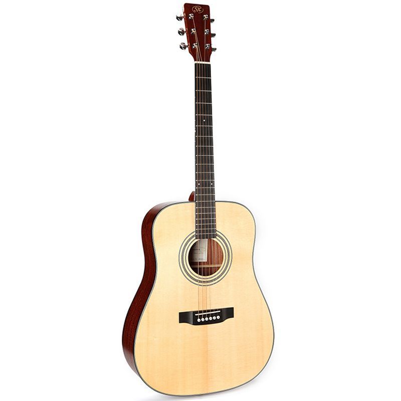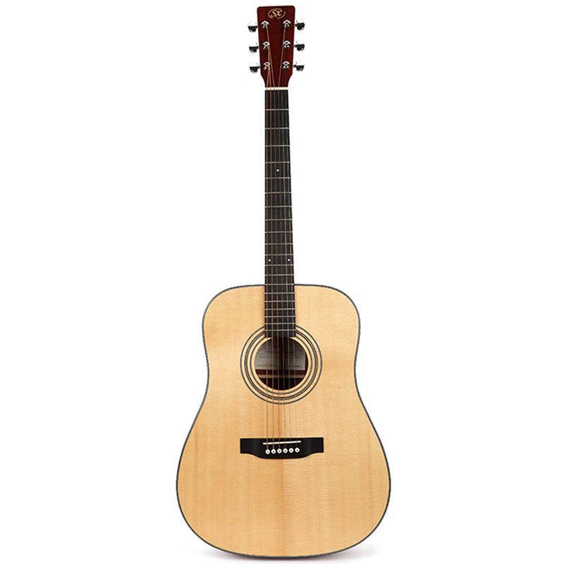 SX SD704 Гитара акустическая, верхняя дека массив ели, нижняя дека и обечайка: сапеле, гриф: окуме, накладка грифа и нижний порожек: палисандр, колки: хромированное покрытие, цвет натуральный